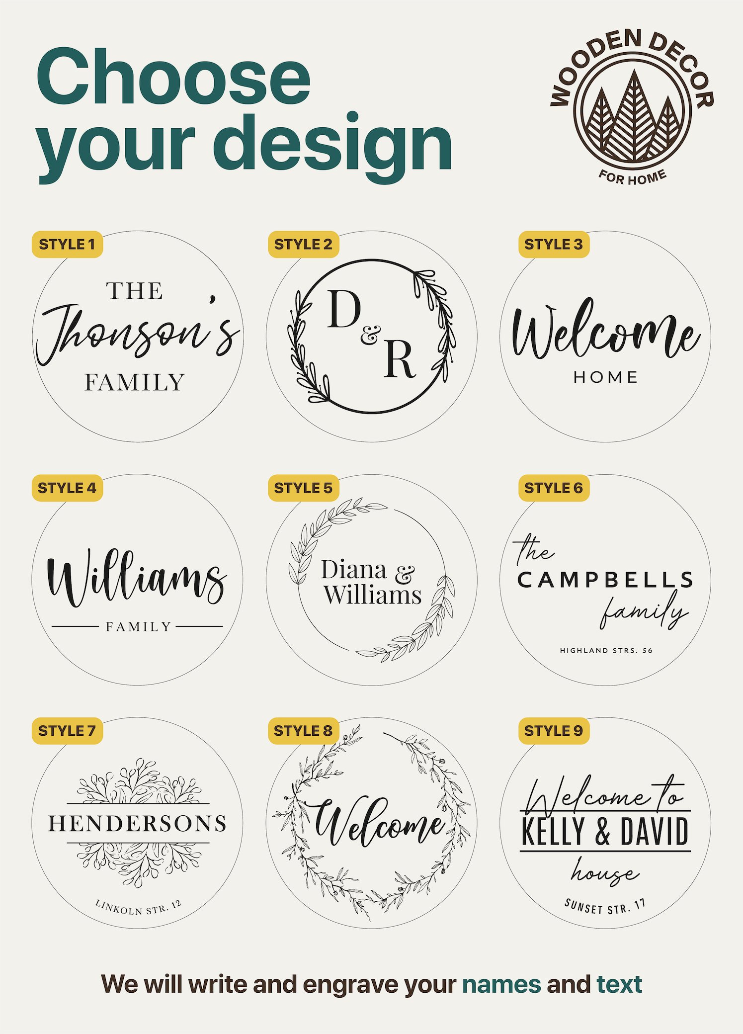 - 🏠 Fully Customizable Design Choose your family name, monogram, welcome message, or special quote. Let us know your idea and we’ll tailor it to your vision—no templates, just true personalization.